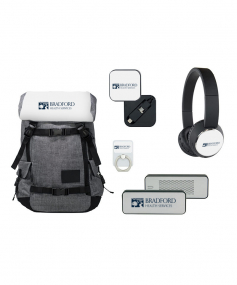 Make a statement with this bundle! Included in the kit is the cut-and-sewn Penryn Pack™ with a custom full color top and all the tech items you could want!This 5-piece gift set comes with our best sellers:Penryn Pack™Beebop wireless HeadphonesEvrybox 4400mAh Power Bank + wireless SpeakerArgonot MFI-certified Cord with Micro-USBRingr Smartphone Multi-toolAny or all of the items can be personalized at no additional charge, with no setup charges and only a 1-piece minimum. 19.5" H x 14" W x 7" D